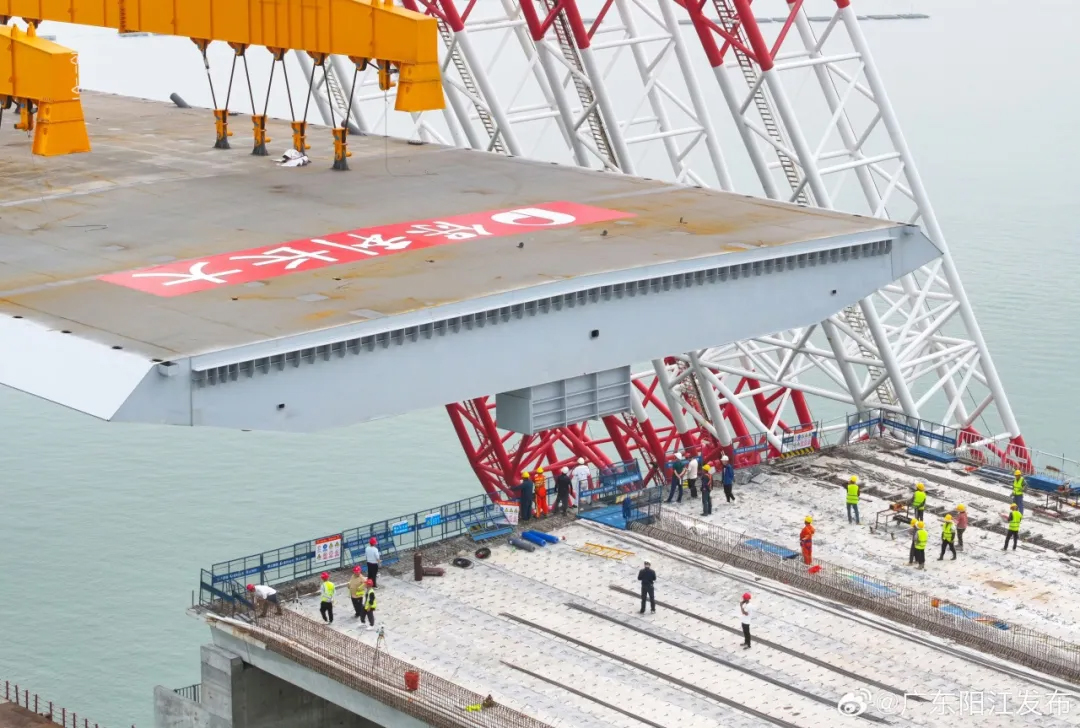 見縫插針!巨力索具直擊陽江港大橋合龍瞬間