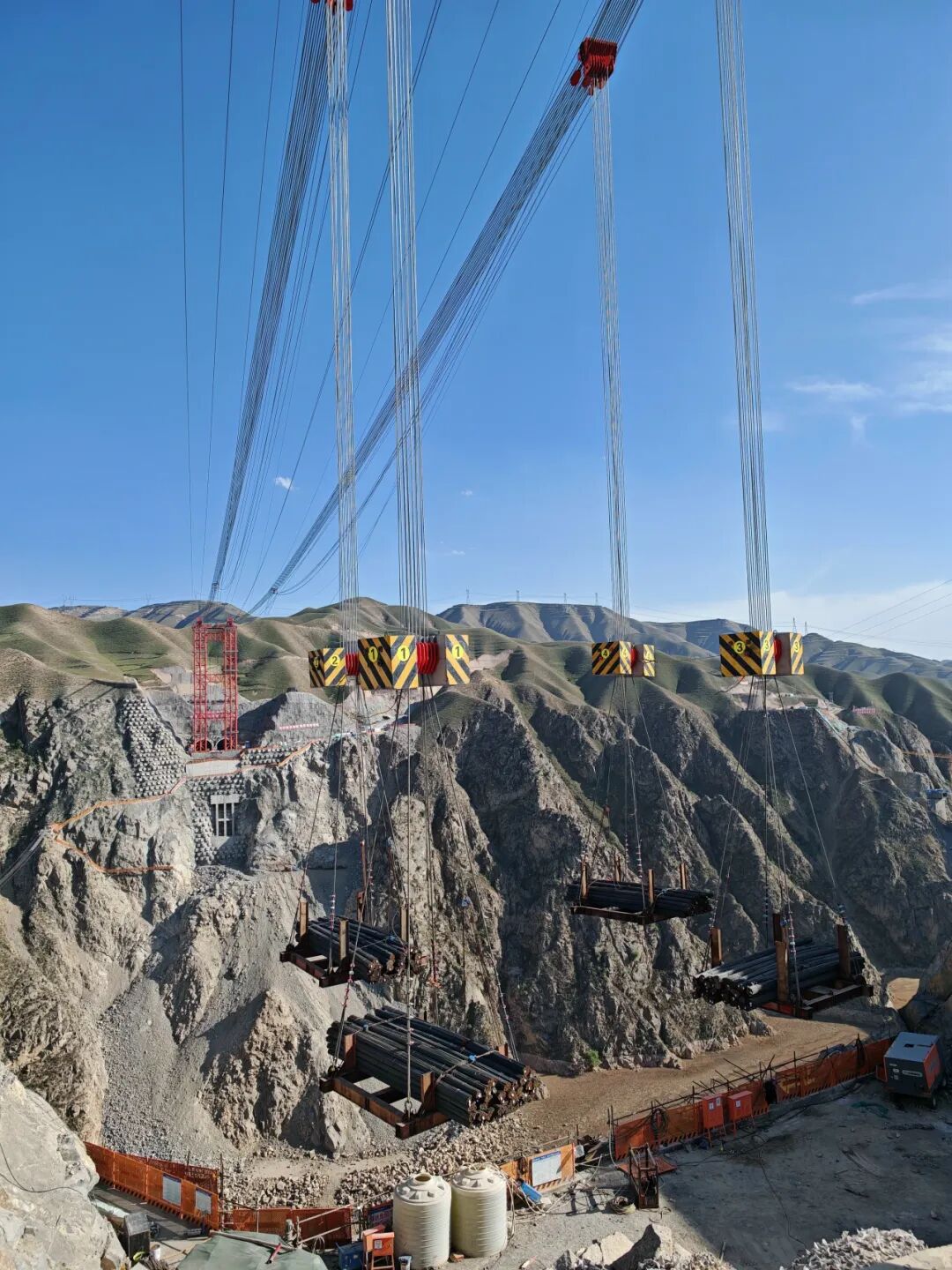 2025年5月10日,蘭永臨高速公路關鍵控制性工程洮河大橋500噸大型纜索吊裝系統(tǒng)試吊完成,標志著我國西北地區(qū)在建最大上承式鋼管混凝土拱橋建設取得關鍵突破,巨力索具吊裝系統(tǒng)成功為大橋主體施工按下“加速鍵”,大橋正式邁入主體結構施工階段。