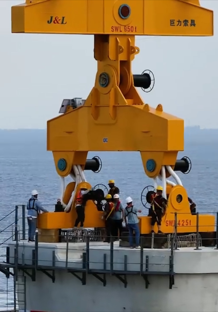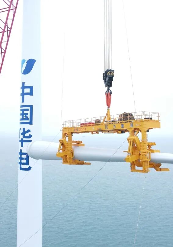 由巨力索具為中國船舶集團(tuán)海裝風(fēng)電股份有限公司生產(chǎn)制作的5MW海上單葉片吊具在福州平潭吊裝圓滿成功。