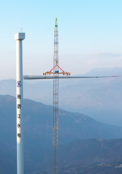 國投集團(tuán)雅礱江水電臘巴山風(fēng)電項目采用巨力索具單葉片吊具,在百米高空順利完成精準(zhǔn)對接,這是四川省內(nèi)首個成功實現(xiàn)單葉片吊裝的風(fēng)電項目。