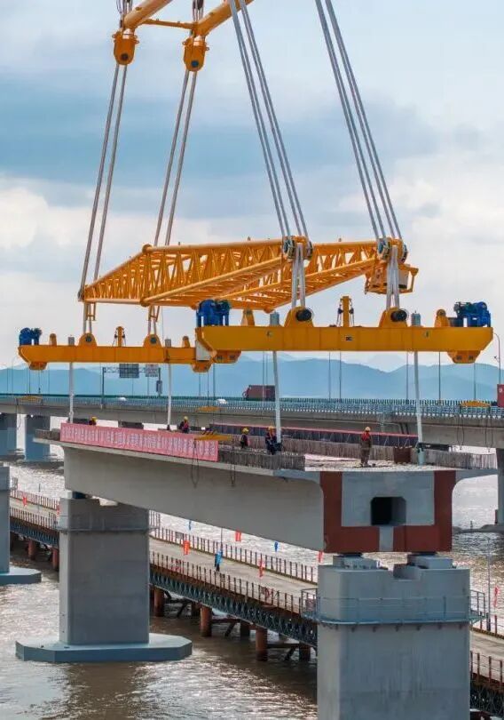 巨力索具箱梁吊具全程保障國內(nèi)首座市域(郊)鐵路跨海大橋——象山線跨海大橋,重1700噸的預(yù)制箱梁成功架設(shè)。