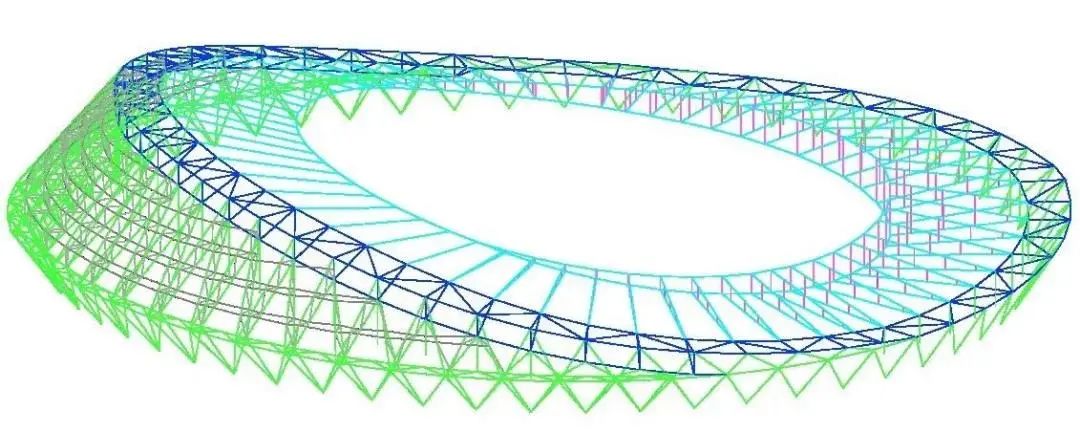項目索結構為首創的車幅式單-雙層混合索網體系,共計42榀。其中西側看臺上方屋面較高,采用單層索網,共設計16榀徑向索;南北側及東側看臺上方為雙層索網,雙層索網內拉環間設置撐桿,共設計26榀徑向索,巨力索具承擔了環索和環索索夾的設計及生產工作,其中,由于該項目的索結構是單雙層索網的混合結構,索夾的設計及生產難度大,部分索夾的最大不平衡力超過750噸,在體育場館建設中屬于最大的。